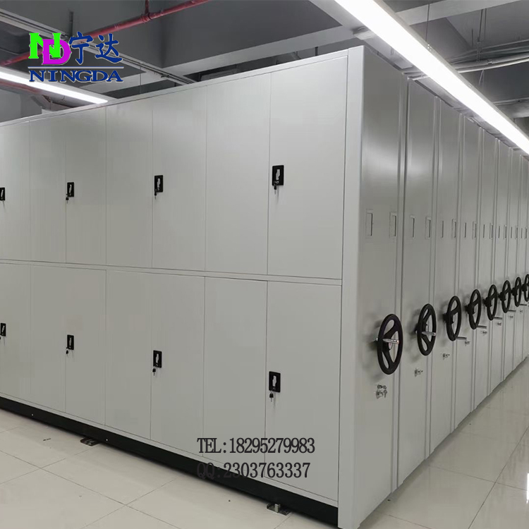 2、密集架由正反上中下護板,起支撐作用的立柱、擺放檔案資料的擱板、門板、搖把系統、底盤系統、傳動系統、防塵系統組成。
