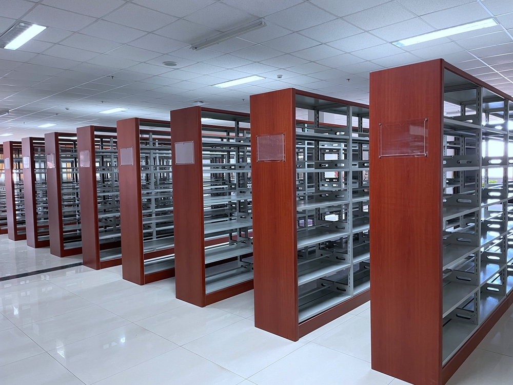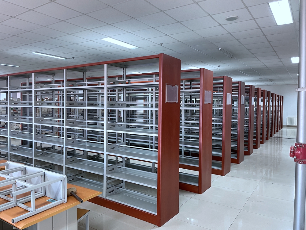 鋼制書架:采用優質冷軋鋼板材料,經數控設備剪切、模壓成形;鋼制書架每層擱板均勻承重80kg,單面擱板均勻承重40kg;鋼制架體表面經除油、去銹、磷化、酸洗等工序前處理,再經亞光靜電噴塑,涂層經久耐用,色彩搭配美觀,色澤均勻一致。